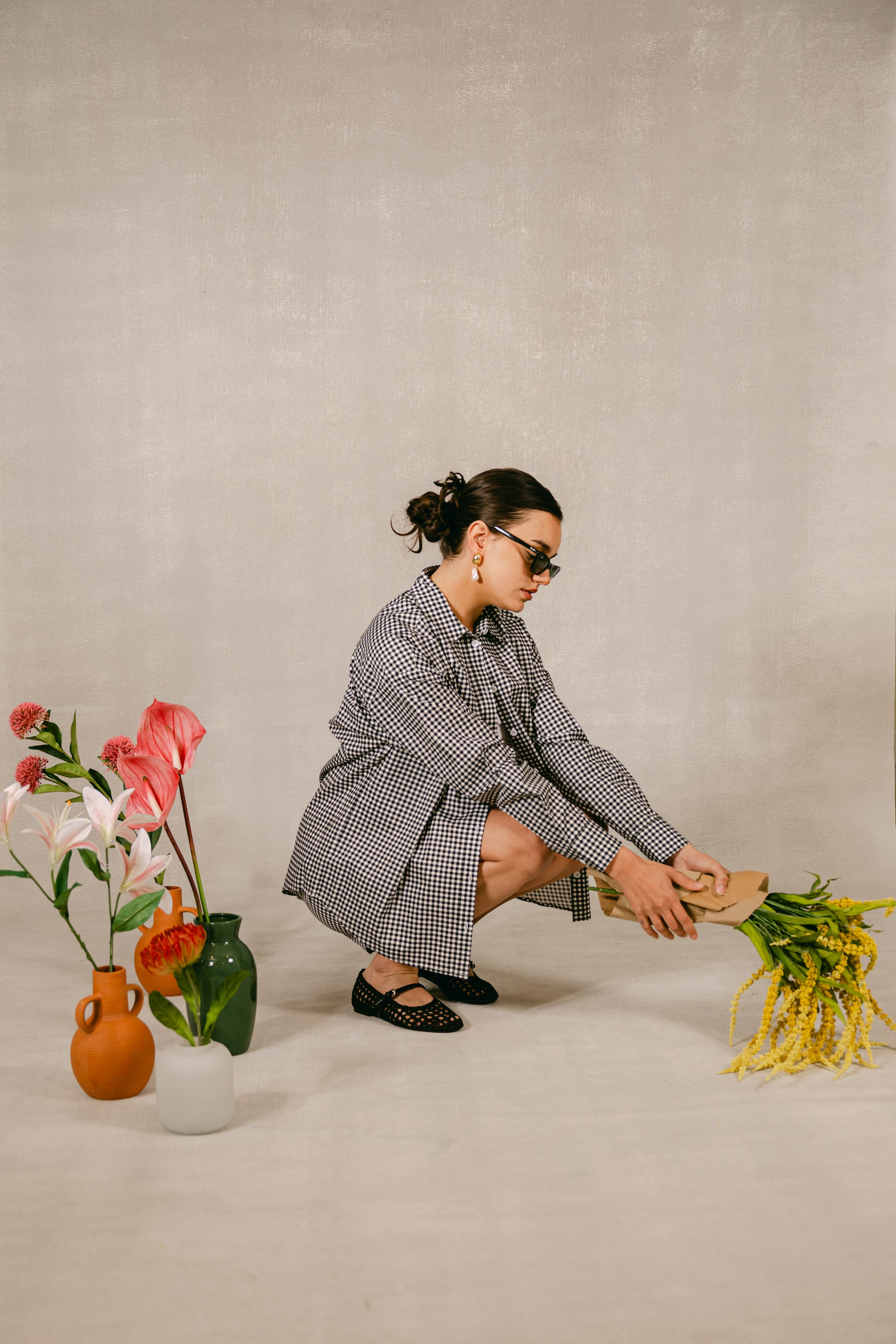 Oversized Cotton Gingham Button-Down Shirt – Black & White Gingham